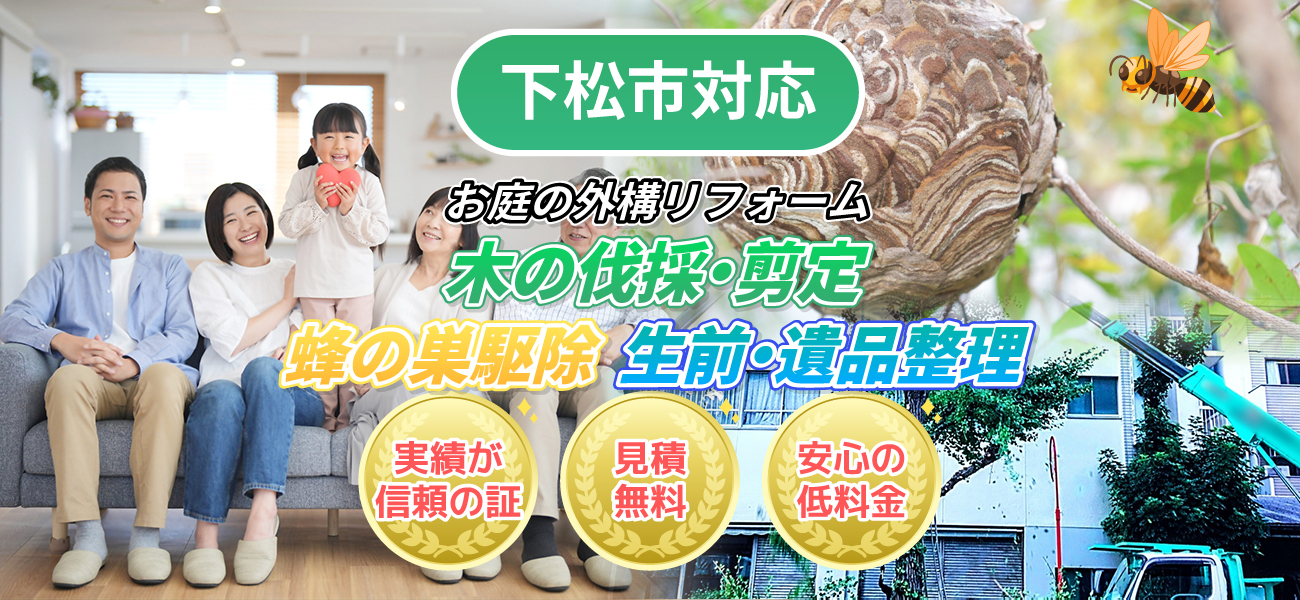 下松市対応 木の伐採・剪定、蜂の巣駆除、生前・遺品整理下松市対応 木の伐採・剪定、蜂の巣駆除、生前・遺品整理